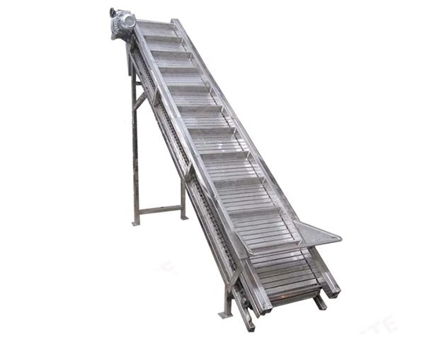 采用不銹鋼帶檔板作為載體,適用于各種食品行業(yè)的物料提升輸送等,可根據要求設計噴淋和集水裝置.